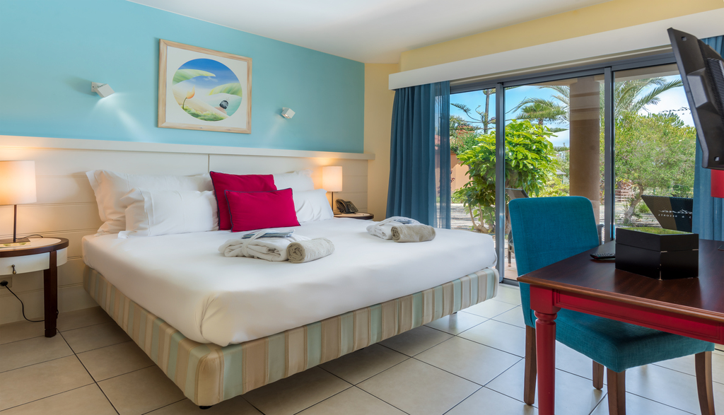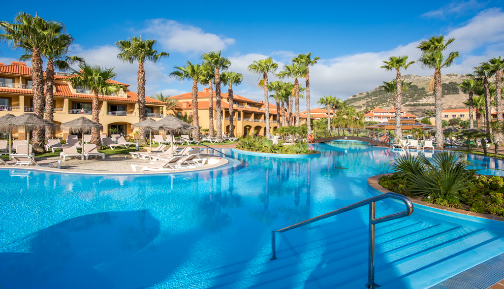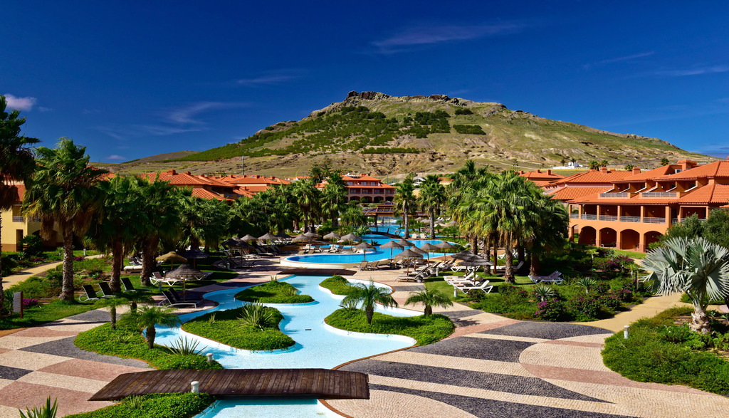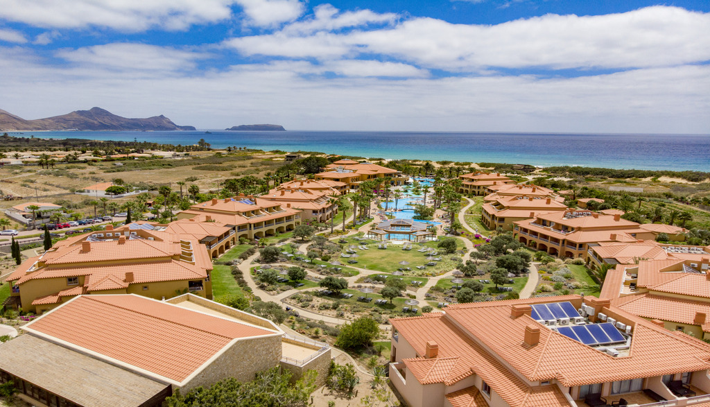 O hotel Pestana Porto Santo é um resort all inclusive 5 estrelas situado em frente à praia do Porto Santo, com 9 quilómetros de areia fina e água cristalina.