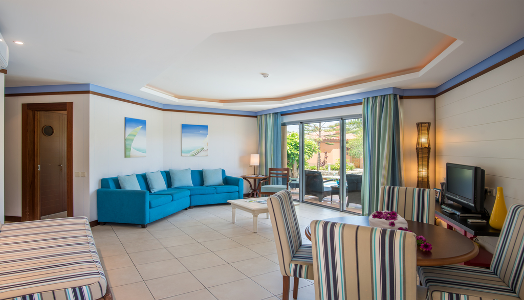 Os quartos são decorados em tons de azul do oceano e têm TV de ecrã plano e varanda. Se desejar mais privacidade poderá optar por uma Pool Villa com a sua própria piscina privada.