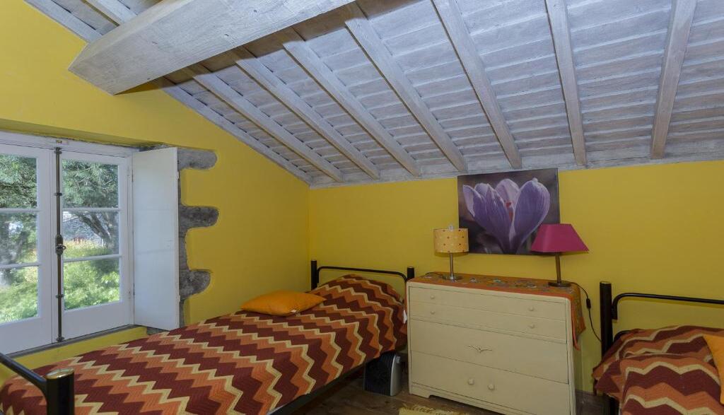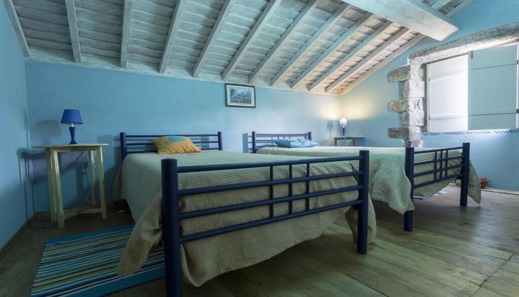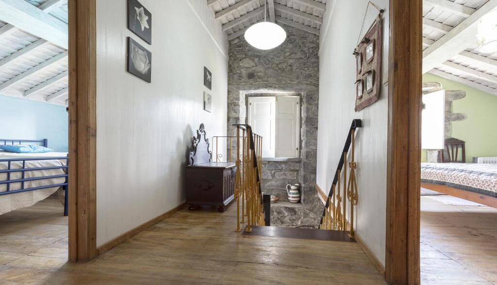 No primeiro andar, acessível por escadas, há três quartos de cama e uma casa de banho grande. Um dos quartos tem uma cama de casal e os outros dois têm duas camas de solteiro cada.