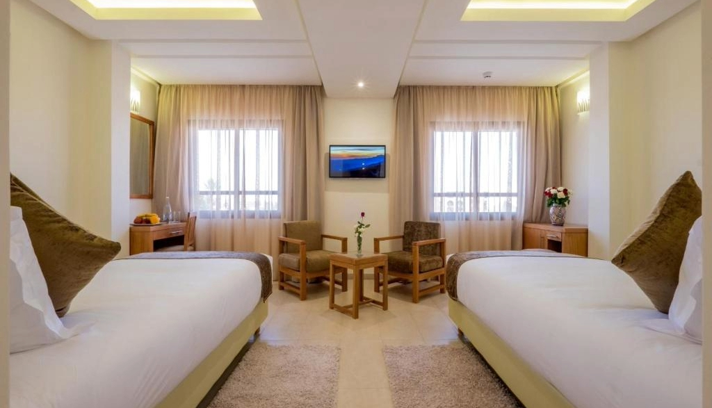 - Receção 24 horas, idiomas: Árabe, Alemão, Inglês, Francês, Espanhol; WI-FI gratuito em todo o hotel
