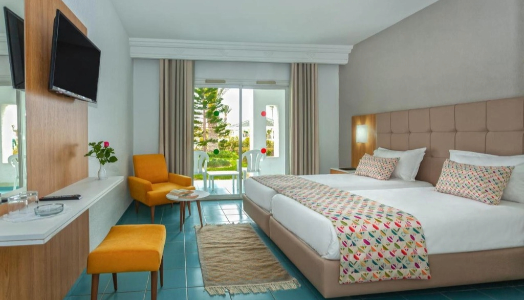 Construído em um estilo típico mouro, o Hotel Djerba Holiday Beach, totalmente climatizado, oferece 297 quartos e 3 suítes com a opção de vista para o mar ou para a terra.