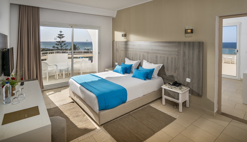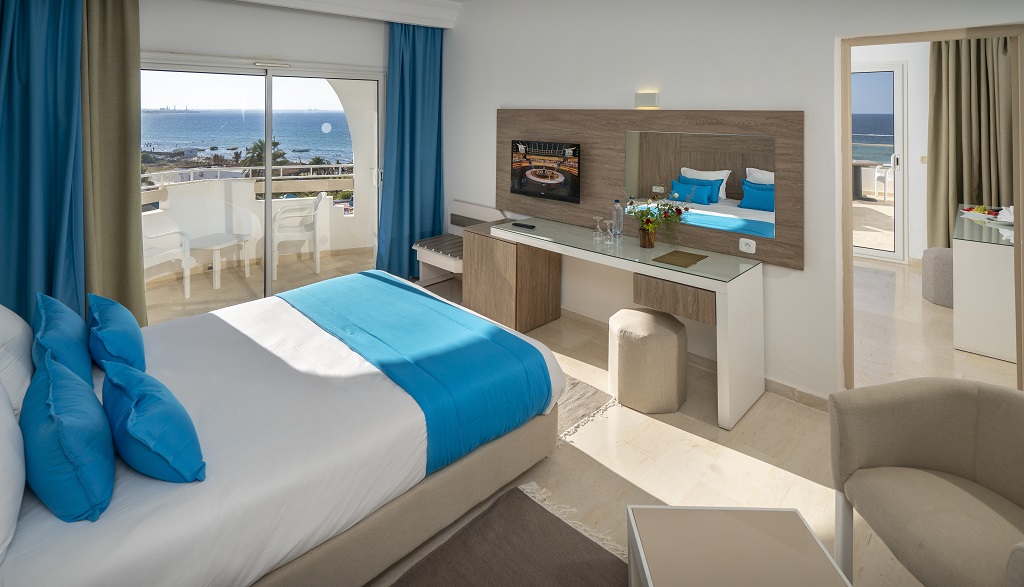 Junior Suites (36–38 m²): com sala de estar e vista mar.