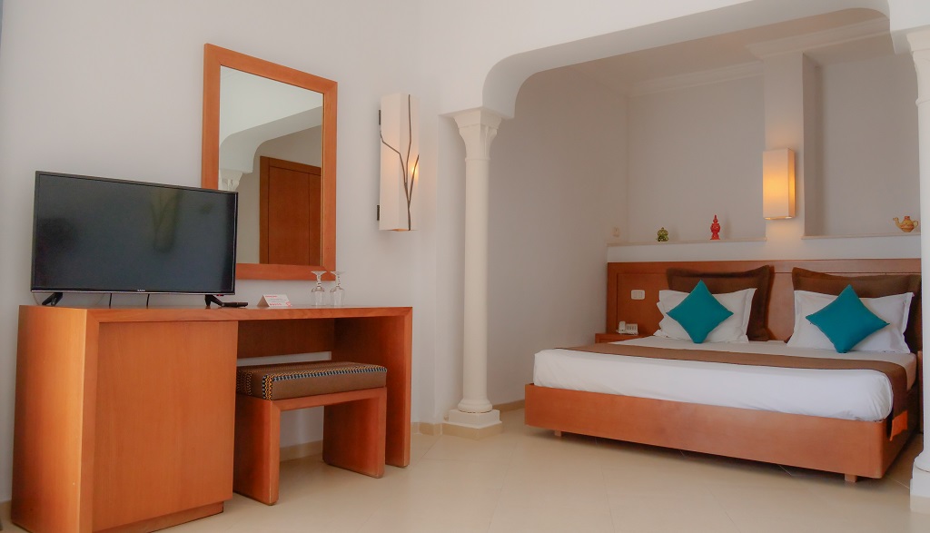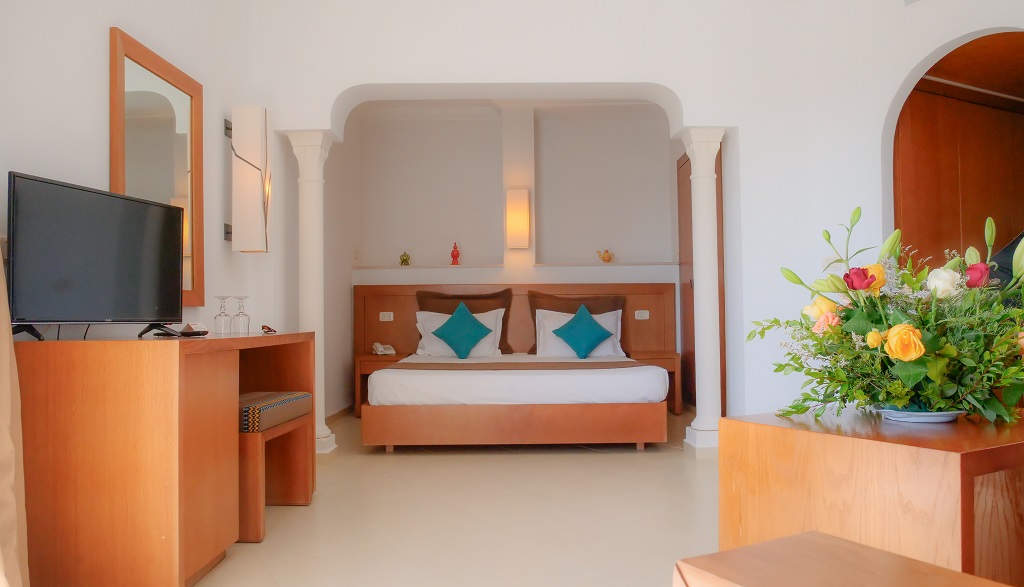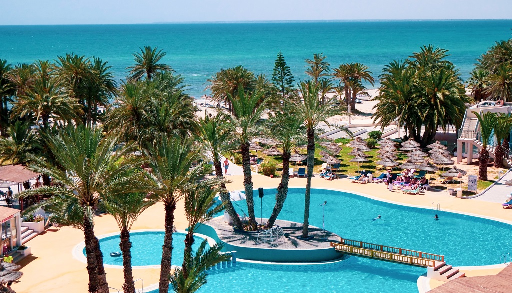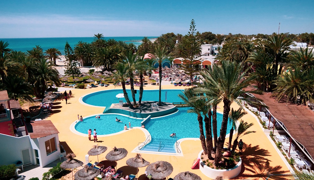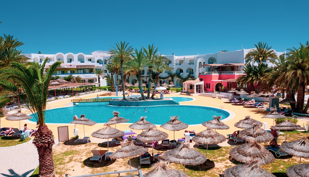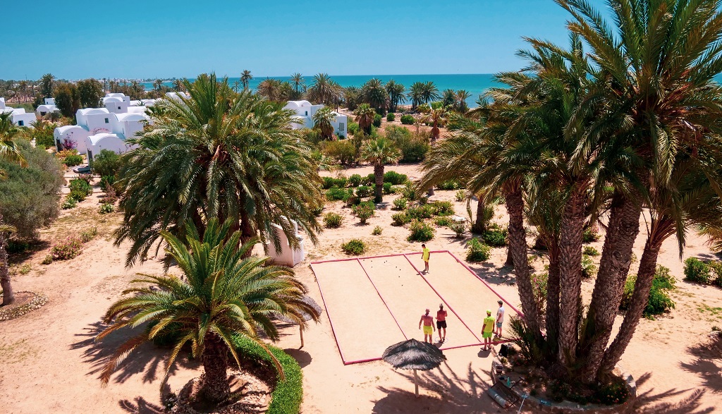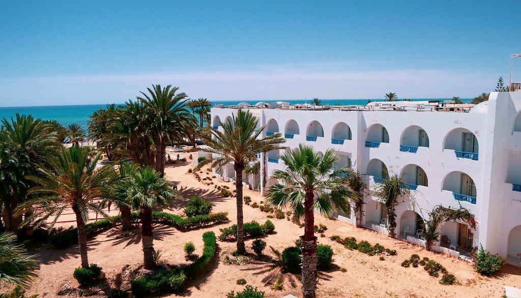 Localização: Sudeste da ilha de Djerba, em frente a uma praia privada de 400 metros com dunas e palmeiras.