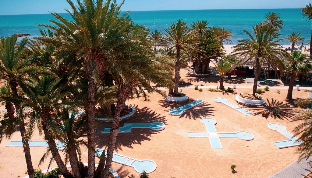 Situado na região de Aghir, o Golf Beach & Thalasso Djerba é um hotel acolhedor e familiar, rodeado por palmeiras e jardins exuberantes, junto a uma das praias mais bonitas da ilha. Ideal para férias relaxantes ou ativas, com opções para famílias, casais e grupos de amigos.