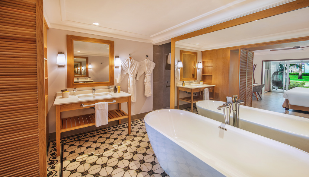 Os quartos são elegantes pois incluem mobiliário moderno. Todos são equipados com televisão de ecrã plano, ar condicionado, produtos de higiene pessoal, comodidades para preparar chá e café e ainda alguns quartos dispõe de varanda e vista para o mar.